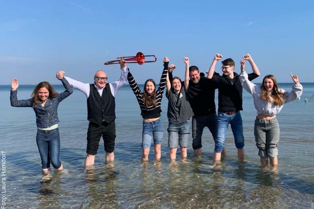 Mit Lisa Wulff (Bass), Ella Burkhardt (Gesang), Kjell Kitzing (Gitarre), Nils Landgren (Posaune, Gesang), Eva Klesse (Schlagzeug) und Fabia Mantwill (Saxophon) (v. l. n. r.) wird ein herausragendes Ensemble auf der Bühne stehen, das in dieser Besetzung auch wenige Tage später bei einem der JazzBaltica-Familienkonzerte zu hören sein wird.