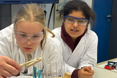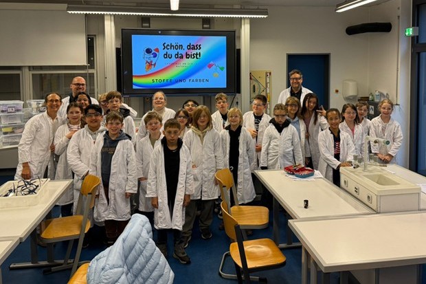 Nach dem großen Erfolg der ersten Labortage im Mai und Juni, bei denen die damalige Klasse 3b mit Begeisterung experimentierte, kehrten die Schülerinnen und Schüler nun als 4b an die Cesar-Klein-Schule zurück. Am 14. November durften sie erneut einen spannenden Labortag erleben. Diesmal zum Thema „Farben und Stoffe“.