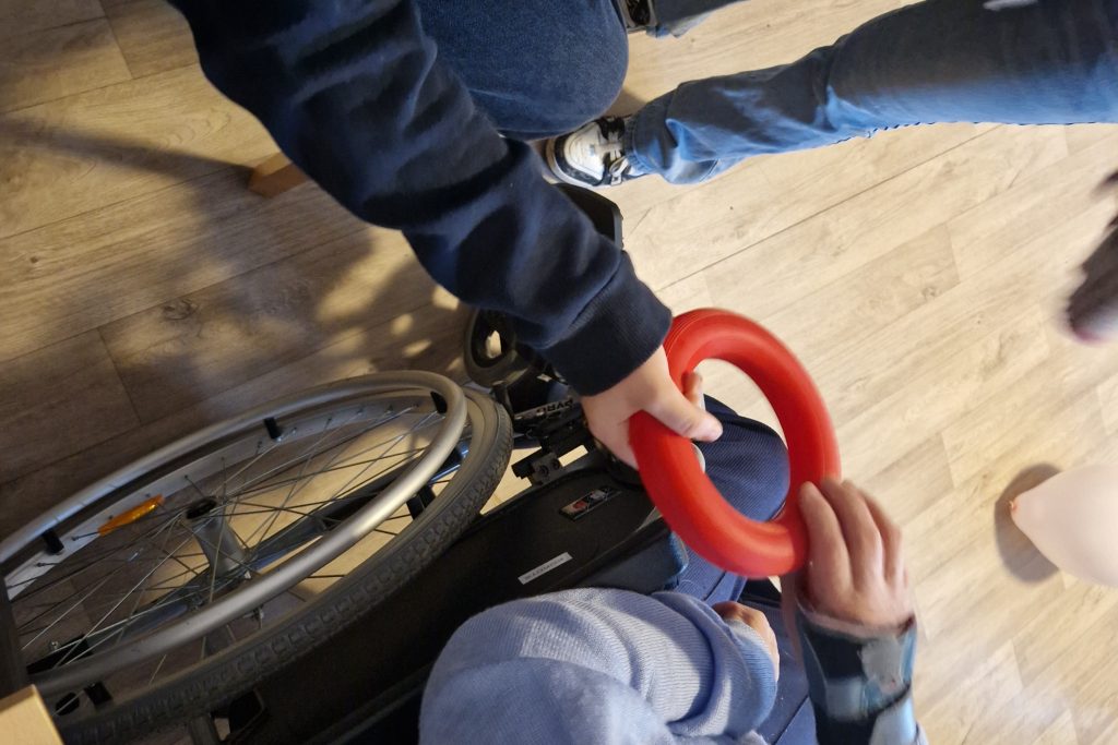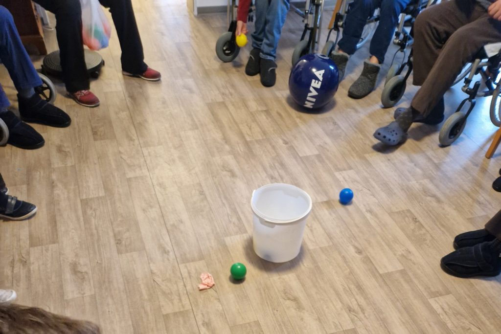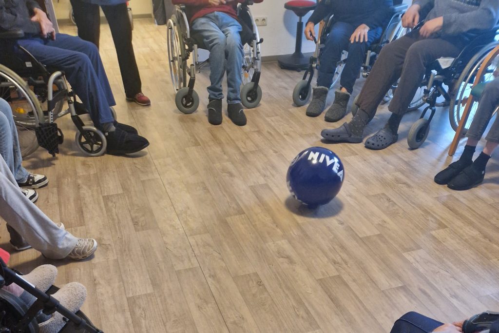 Mit sichtbarer Freude beteiligten sich die Schülerinnen und Schüler an den Bewegungsangeboten: Beim Sitzfußball, beim gemeinsamen Werfen von Luftballons und beim Weiterreichen bunter Ringe lockerte sich schnell die anfängliche Zurückhaltung. Schon nach wenigen Minuten entstand ein fröhliches Miteinander zwischen Jung und Alt.